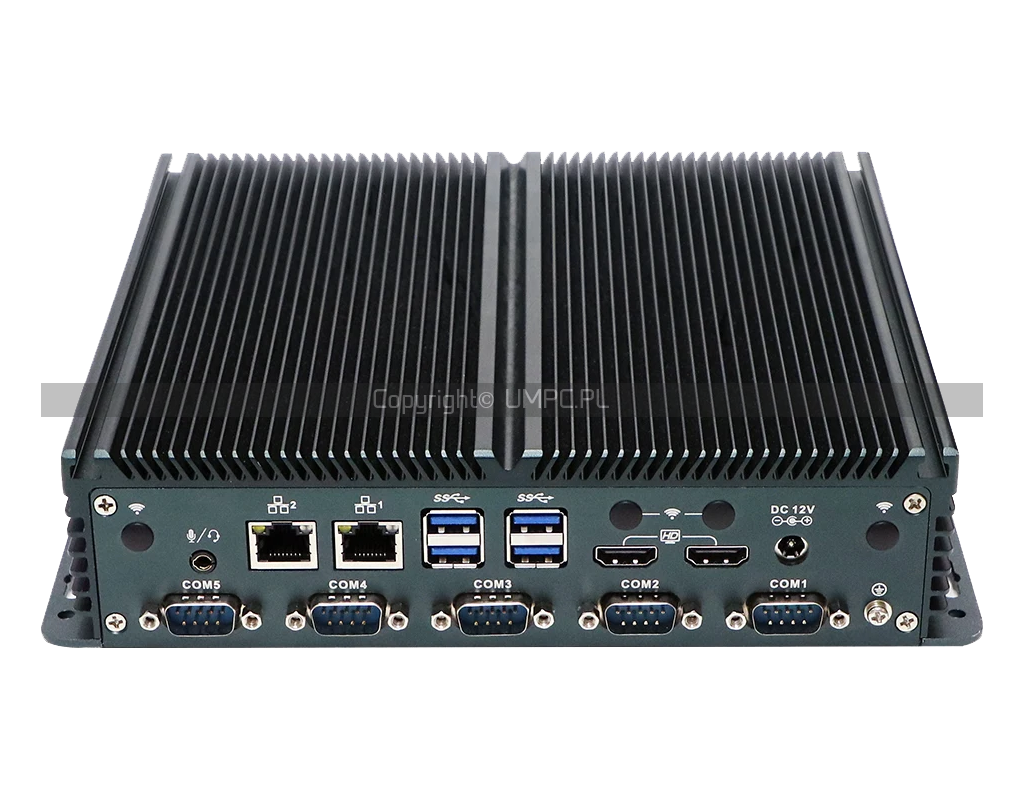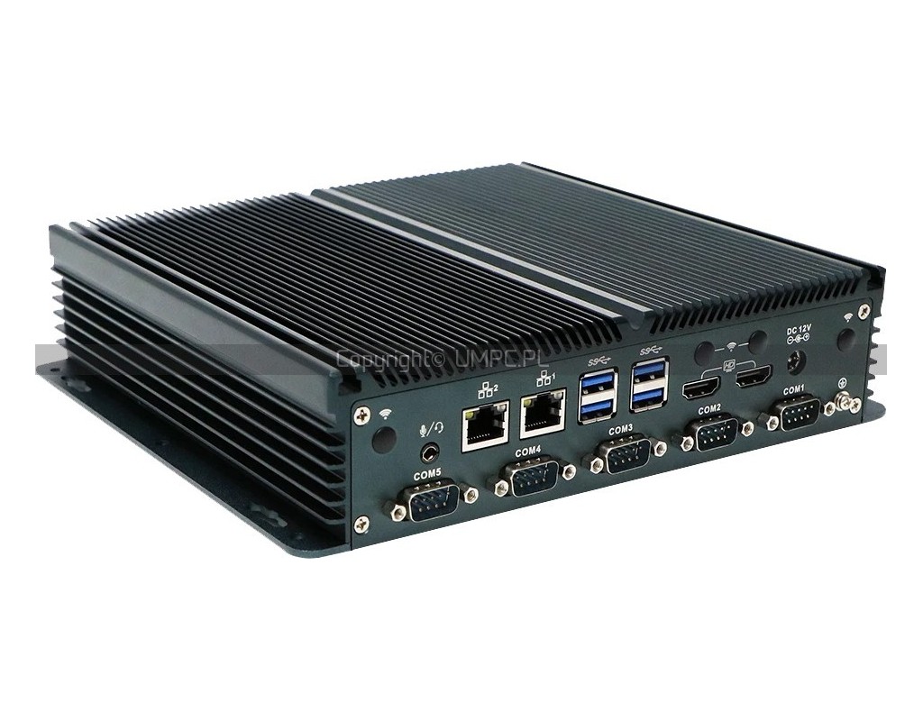 Mini PC fanless N100 do pracy ciągłej w automatyce. Interfejsy 2x LAN, 6x RS232 i RS485 do szaf sterowniczych.