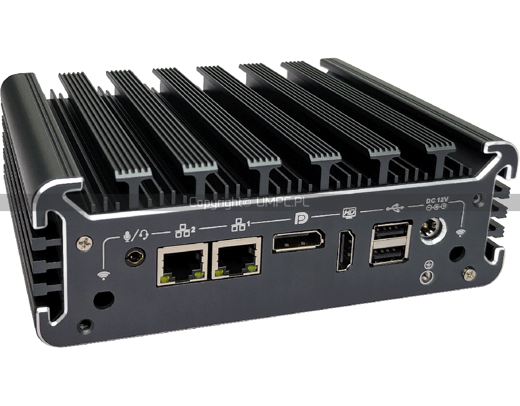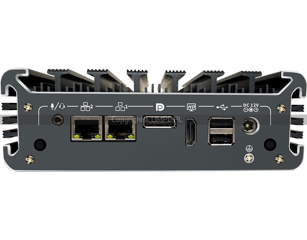 Procesor i5-7360U z układem Iris Plus 640 w pasywnej konstrukcji. Dwa porty 2.5G LAN, wyjścia HDMI i DP oraz obsługa szybkich dysków NVMe.