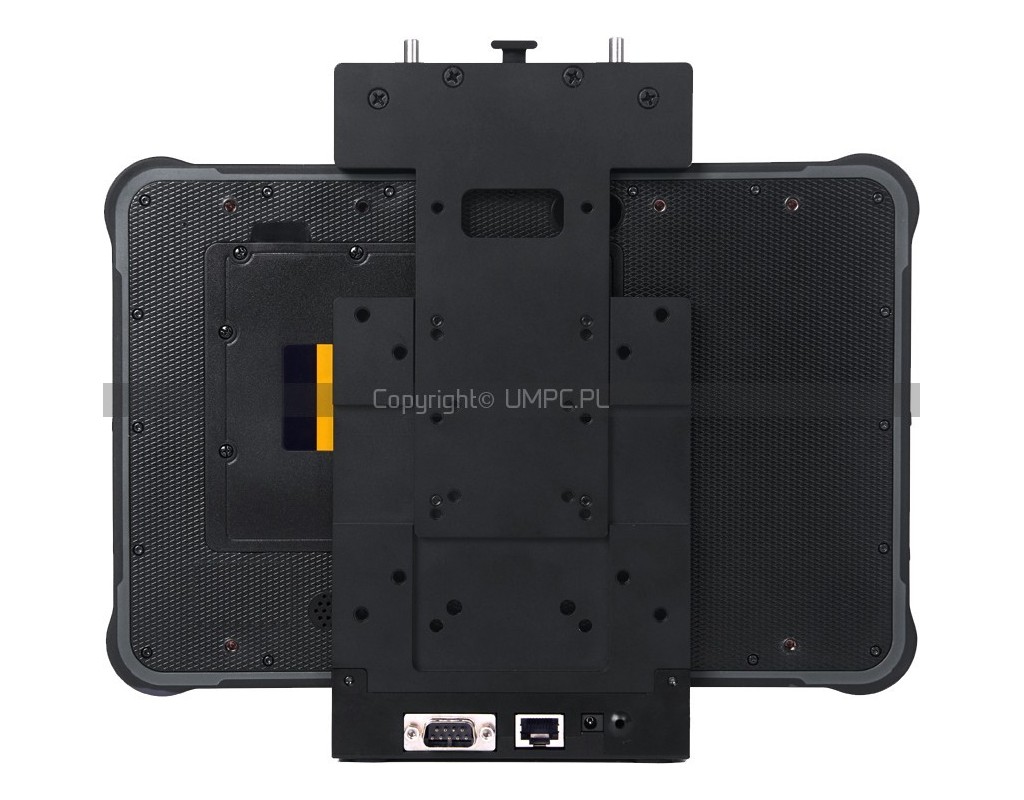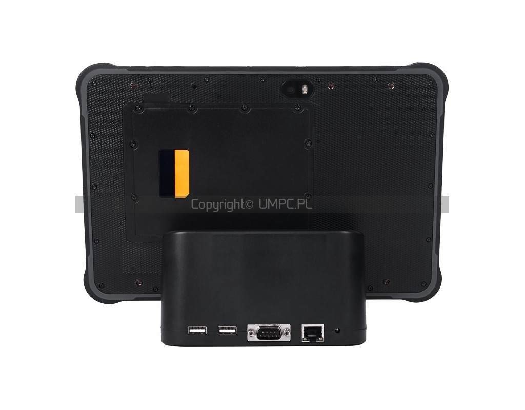Antypoślizgowa obudowa z uchwytem nadgarstkowym i walizkowym zapewnia komfort użytkowania przez długie godziny. Tablet można łatwo przekształcić w stacjonarną jednostkę roboczą dzięki stacji dokującej, która poza ładowaniem urządzenia i zapasowej baterii rozszerza funkcjonalność o 3 porty USB 2.0, RS232 oraz LAN. Urządzenie świetnie sprawdza się także w pojazdach i wózkach widłowych, korzystając z dedykowanych uchwytów.