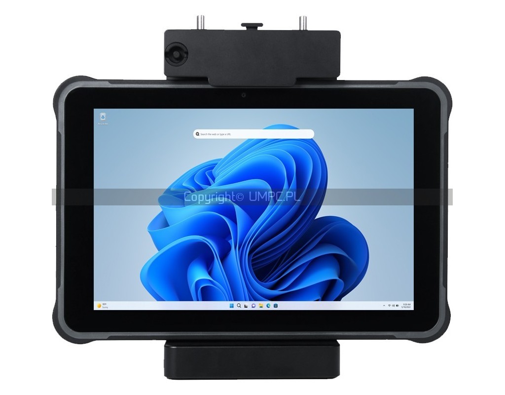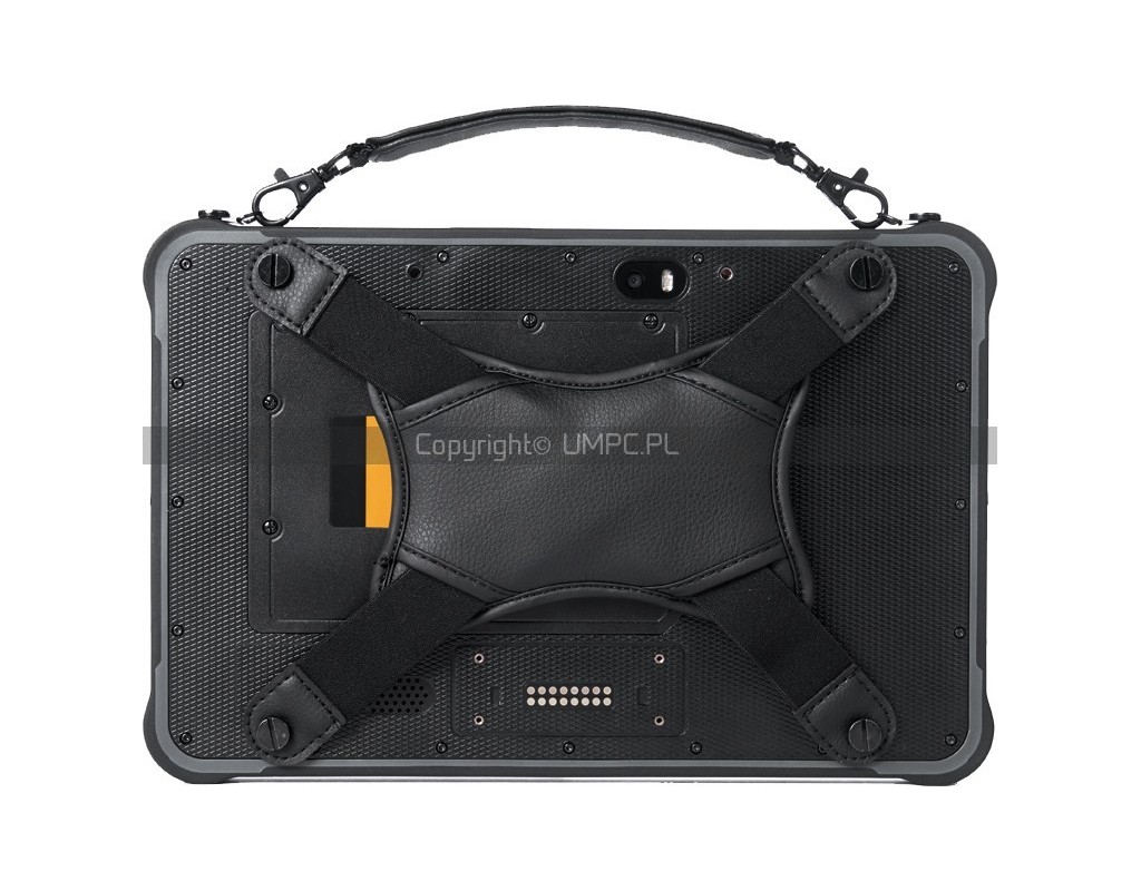 Antypoślizgowa konstrukcja z uchwytem nadgarstkowym i walizkowym gwarantuje pełną wygodę użytkowania przez wiele długich godzin. Tablet można bez trudu zmienić w stacjonarne stanowisko robocze dzięki stacji dokującej, która poza ładowaniem urządzenia i dodatkowej baterii rozszerza funkcjonalność o 3 porty USB 2.0, RS232 oraz LAN. Urządzenie bardzo dobrze radzi sobie także w pojazdach oraz wózkach widłowych dzięki specjalnym uchwytom.
